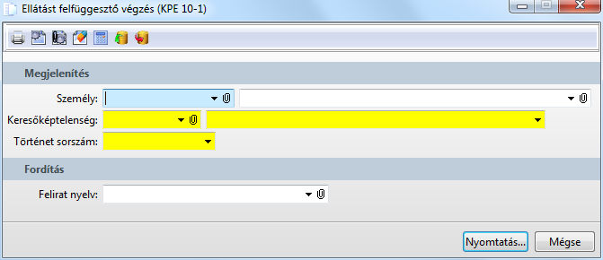A listával a KPE 10-1 számú Ellátást felfüggesztő végzés nevű nyomtatvány állítható elő. (Keresőképtelenség Történet fülén felvett felfüggesztés típusú esemény adatai alapján nyomtathatjuk ki a végzést.)