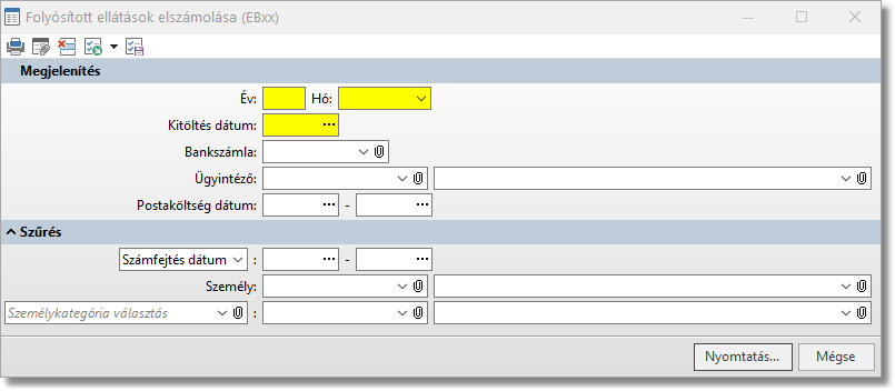 Funkció elérése menüszerkesztéskor: Bérszámfejtés / TB kifizetőhely / Listák / Folyósított ellátások elszámolása (EB xx)
