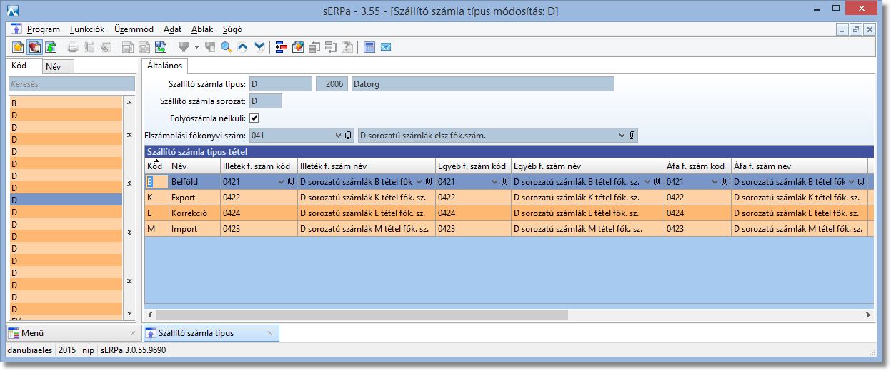 Ebben a menüpontban a 4DSoft-ban szereplő szállítószámla típusokat és a szállítószámla típusok konvertálási beállításait szabályozhatjuk.