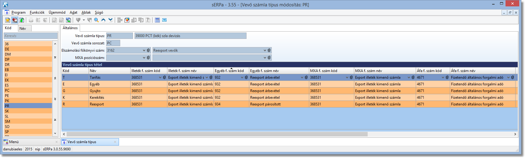 Funkció elérése menüszerkesztéskor: DSPE menü / Vevőszámla típus
