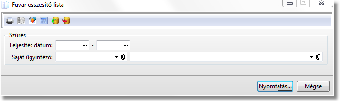 Funkció elérése menüszerkesztéskor: Cégfüggő / Fuvar összesítő