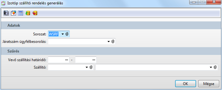 Funkció elérése menüszerkesztéskor: Cégfüggő / Izinta / Izotóp szállító rendelés generálás