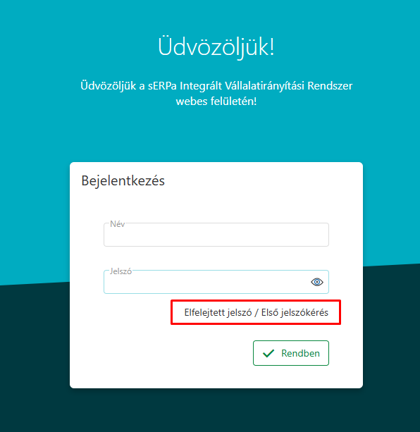 A Bejelentkező felületen található link segítségével a felhasználó kérhet első jelszót, amennyiben még nincs megadva, illetve új jelszót adthat meg amennyiben elfelejtette az előzőt.