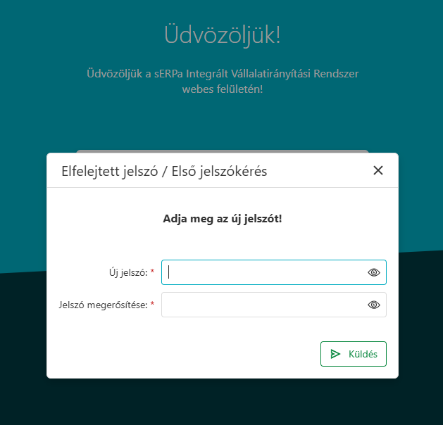 A küldés gombra kattintva elküldi a szerver az emailt. A kapott emailben található linkre kell kattintani, ami elnavigál a felületre ahol az új/első jelszavat meg lehet adni.