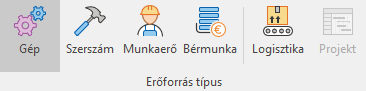Az ütemezési területen a gép erőforrás típusok foglalásai jelennek meg. |