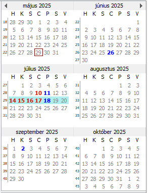 •világoskék háttér = ezek a napok látszanak az ütemezési területen a nézet beállítása szerint