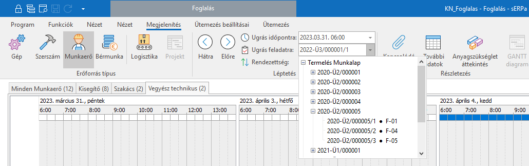 A Foglalás funkció központi része az Ütemezési terület. Itt kerülnek megjelenítésre a már beütemezett feladatok (munkalapok).