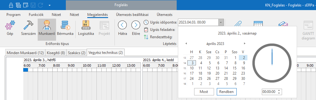 A kiválasztott dátumra kattintva az ütemezési területen arra a napra kerül a fókusz és láthatjuk a naptár beállítása szerint az ütemezett feladatokat.