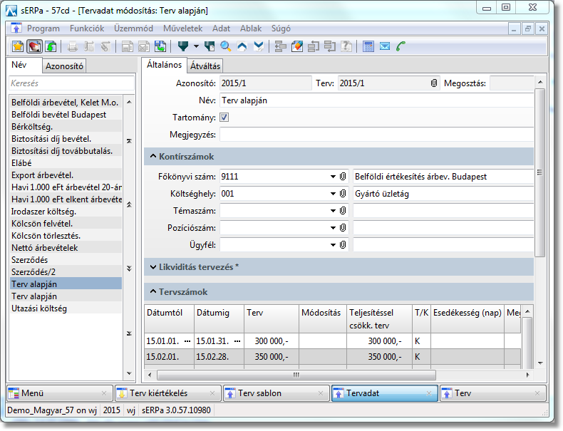A Tervezés almodul segítségével főkönyvi terveket készíthetünk és elemezhetünk grafikusan.