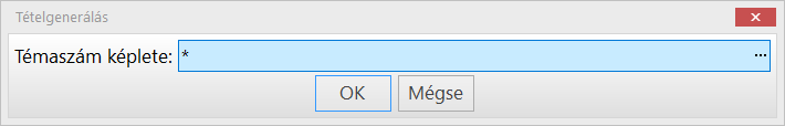 3. A Műveletek/Tételgenerálás témaszámból az összes Témaszámra (költségviselő) vegyük fel a programmal a megosztás tételeit. Ehhez egy csillagot írunk a képletbe.