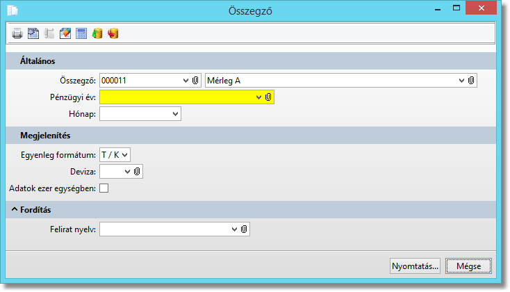 A párbeszédablakban megjelenő mezők attól függenek, hogy az összegző definícióban az általános fülön milyen beállításokat alkalmaztunk, így a fenti kép csak egy esetre példa.