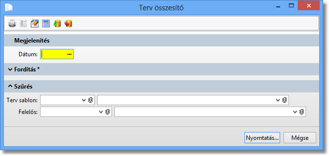 Funkció elérése menüszerkesztéskor: Főkönyv / Tervezés / Listák / Terv összesítő