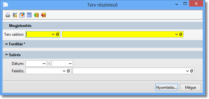 Adott tervsablonnal rögzített tervek és a sablonban meghatározott sorokra vonatkozó terv / tény / eltérésadatok kimutatása a megadott időszakra, vagy a tervben meghatározott időszakra. A lista kizárólag excel kimenetre készül.