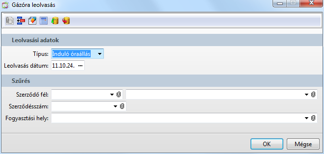 Funkció elérése menüszerkesztéskor: Gázkereskedelem / Gázóra leolvasás