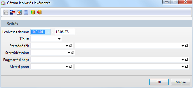 Funkció elérése menüszerkesztéskor: Gázkereskedelem / Gázóra leolvasás lekérdezés