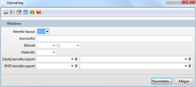 Funkció elérése menüszerkesztéskor: Gázkereskedelem / Gázmérleg lista