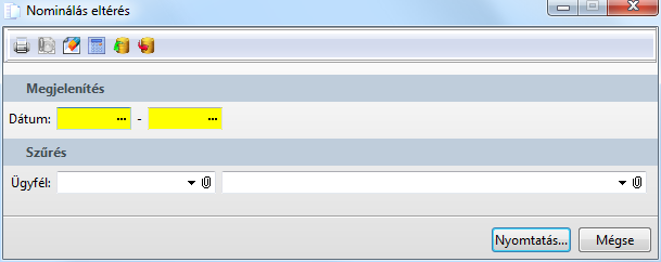 Funkció elérése menüszerkesztéskor: Gázkereskedelem / Nominálás eltérés lista