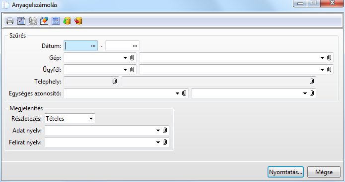 Funkció elérése menüszerkesztéskor: Gépüzemeltetés / Gépüzemeltetés anyagelszámolás