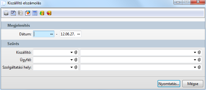 Funkció elérése menüszerkesztéskor: Helyszíni szolgáltatás / Helyszíni szolgáltatás kiszállító elszámolás