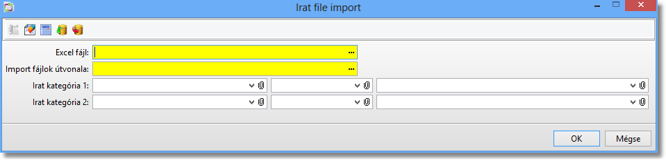 Funkció elérése menüszerkesztéskor: Iratkezelés / Irat fájl import