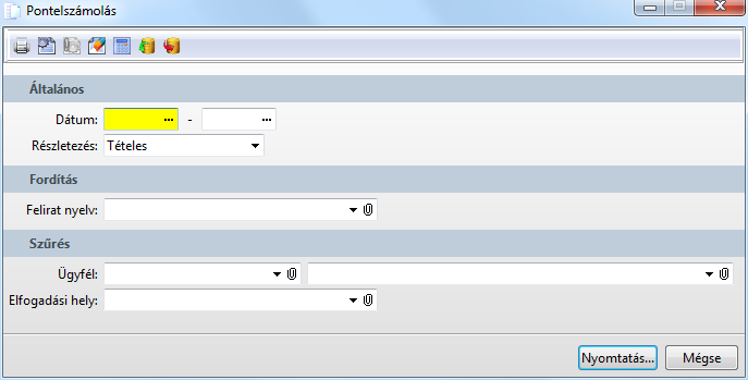 Funkció elérése menüszerkesztéskor: Kiskereskedelem / Pontelszámolás lista