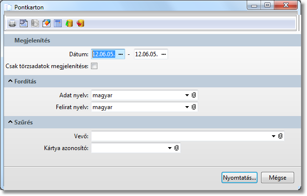 A funkcióval a pontkártya törzsadatait és a pontkártyával történt pontváltozásokat lehet kinyomtatni.