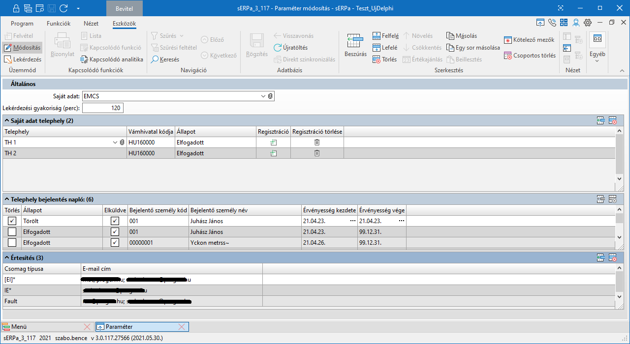 7.A paraméter funkció mellett szükséges beállítani az EMCS - Törzsadat lekérdezés automatikus üzenet típust (ez kell ahhoz hogy minden, a KKK és EMCS által használt törzsadatot eltárolhassunk, ezzel kompatibilissé tudjuk tenni a sERPa-t és az EMCS-t).