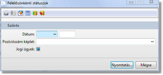 Funkció elérése menüszerkesztéskor: Követeléskezelés / Felelősönkénti státuszok lista