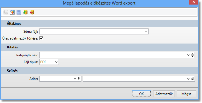 A megállapodások előkészítéséhez szükséges adósadatok, illetve ha van, akkor a megállapodás adatainak exportálása MS Word dokumentumba a nyomtatáskor megadható sémával.