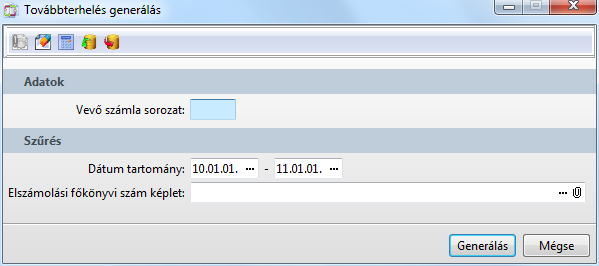 Funkció elérése menüszerkesztéskor: Követeléskezelés / Továbbterhelés generálás