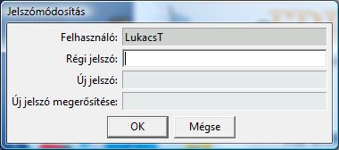 Jelszómódosítás ablakban újra meg kell adni a régi jelszót, valamint az újat kétszer is. Ha a két új jelszó nem azonos, akkor nem lehet OK-t nyomni. OK után a megadottaknak megfelelően módosul a jelszó, és elindul a program. Ha nem jól adják meg a régi jelszót, vagy az új jelszó nem elégíti ki az SQLServer követelményeit, akkor 'Nem sikerült módosítani a jelszót.' hibaüzenet jelenik meg.