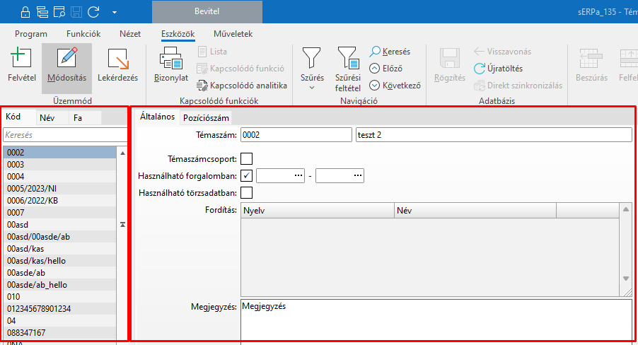 2. Jobb oldali adat ablak, a tényleges adatbevitel területe.