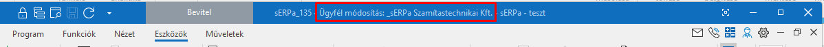 A funkciókat ablak nézetben használva egy harmadik terület is megjelenik az ablak legfelső sorrán, baloldalt sorban a funkció menüben használt ikonja, neve, az üzemmód és a keresőablakban éppen szereplő azonosító.
