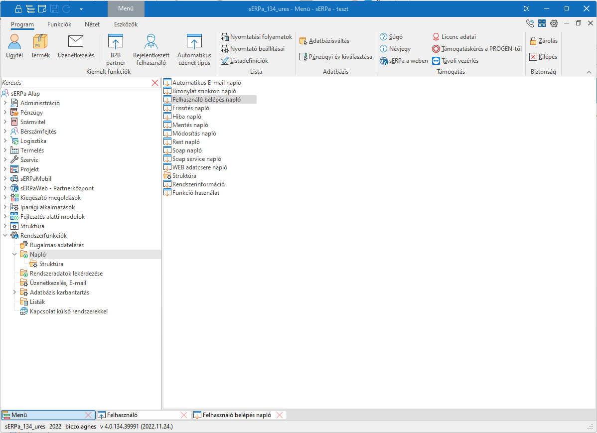 2. A sERPa fülek a következő sáv, amik a Program, Funkciók, Nézet és Eszközök fülek. Ennek a sávnak a jobb oldalán a Gyorselérésű funkciók találhatók.