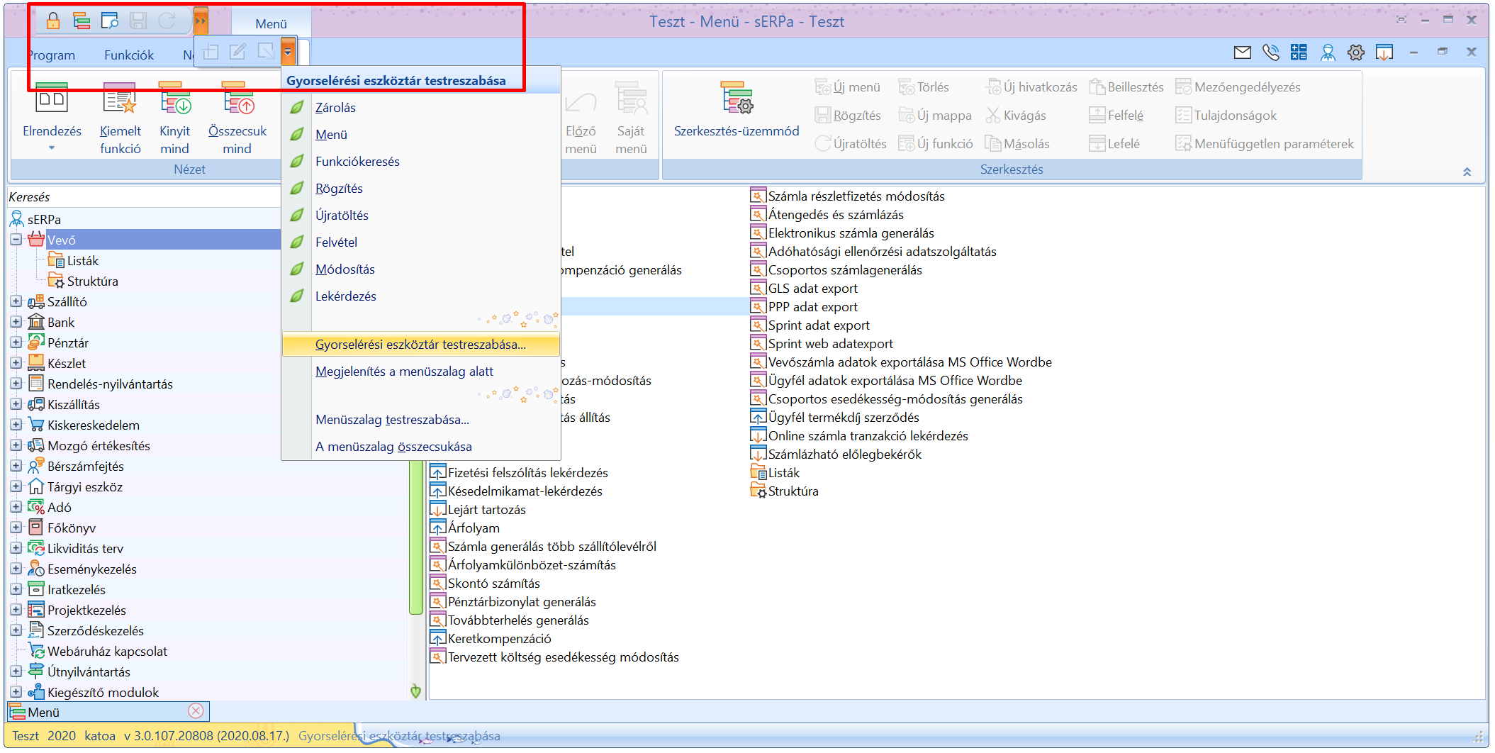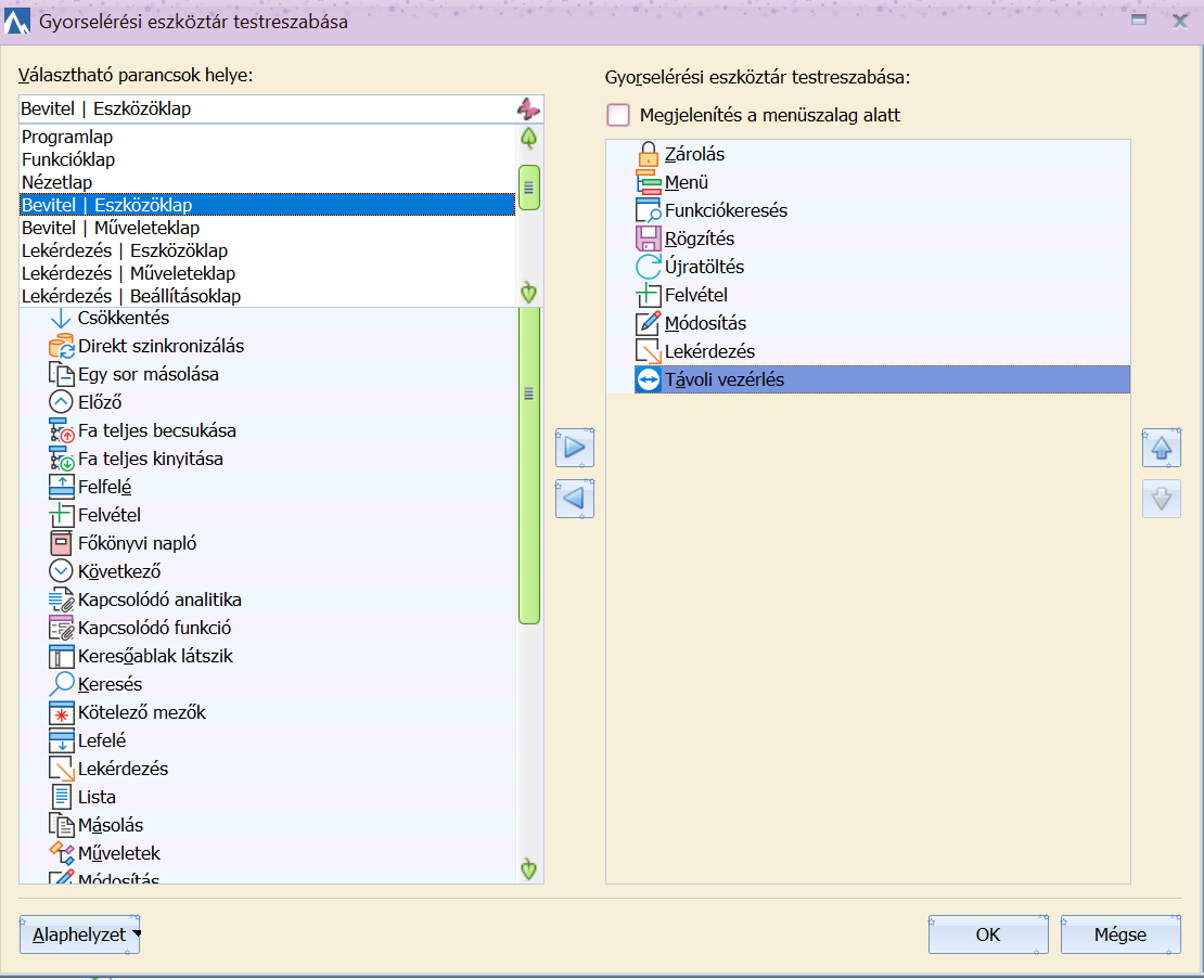 Az eszköztár testreszabása nagyon hasonlít a windowsos programok eszköztár beállításának lépéseihez.