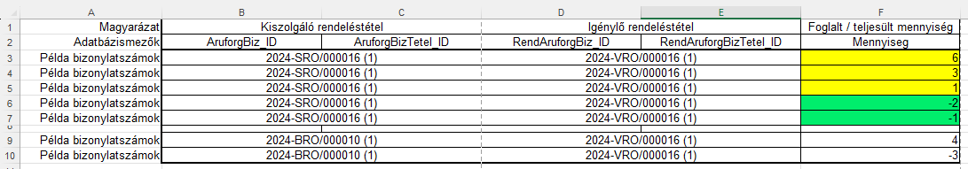 A programban tárolt (dbo.AruforgBizTetelFoglalas tábla) és az itt megjelenített adatok könnyebb megértését ez a táblázat igyekszik szemléltetni: