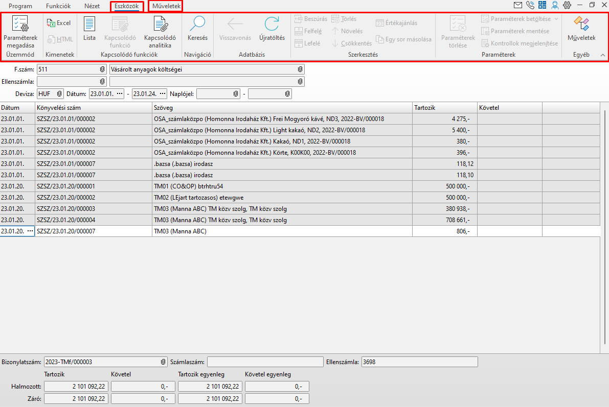 Közös jellemzőjük, hogy az eredményképernyőhöz tartozóan már megjelenik az Eszközök és - ha van - a Műveletek szalagja.