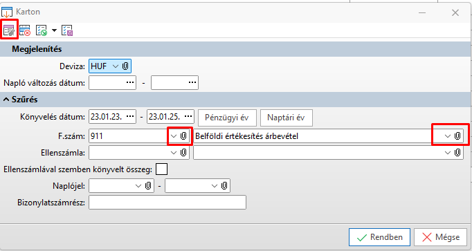 ikonnal a kurzor pozíciójának megfelelő mező szerinti kapcsolódó funkció indítható el. Csak azoknál az adatmezőknél aktív, ahonnan indítható kapcsolódó funkció, ezt a program jelzi az adatmező mögötti gémkapocs meglétével.