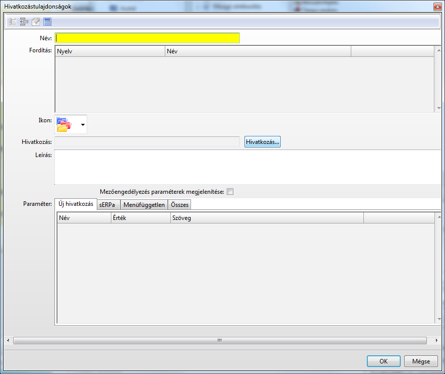 A paraméterek 4 csoportra bontva 4 külön fülön jelennek meg: Hivatkozás / sERPa / Menüfüggetlen / Összes. Figyelem! Hivatkozással menübe kirakott funkcióra nem lehet menüparamétert megadni. A hivatkozással nem a funkció, hanem funkciót tartalmazó könyvtár kerül meghivatkozásra. Ezt a könyvtárat paraméterezve a beállítások ugyan hatnak az alatta lévő funkciókra (közvetlen funkcióindításkor), de amikor kapcsolódó funkcióval egy ilyen linkelt funkció indul el, akkor arra nem hat egyetlen menüparaméter sem. Továbbá a „Kapcsolódó funkció” menüparaméterrel nem lehet megadni beágyazott menüt sem. A táblázat oszlopai: |