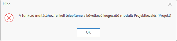Ha a sERPa programban olyan funkciót szeretnénk elindítani, amelyhez az adatbázisban nincs telepítve a szükséges kiegészítő modul, akkor erre figyelmeztető hibaüzenetet kapunk:
