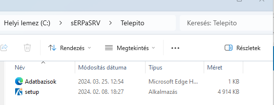 Az első telepítéshez a sERPaSetup.exe programot kell használni, ami a sERPa frissítő InstCD\Kiegeszitesek\sERPaSetup\ alatt található. Ez egy verzió független, önállóan is működő, telepítő letöltő segédprogram.