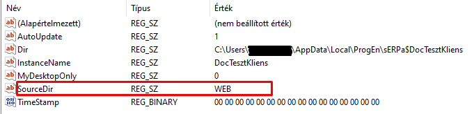A webes telepítés után a Registryben (HKEY_CURRENT_USER\Software\ProgEn\{XXXXXXXX-XXXX-XXXX-XXXX-XXXXXXXXXXXX}) a frissítés helye WEB lesz:
