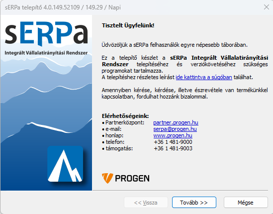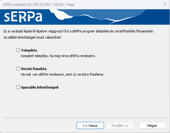 Ebben a fejezetben a sERPa telepítésével, a verziók frissítésével és a Telepítő további lehetőségeivel ismerkedhetünk meg.