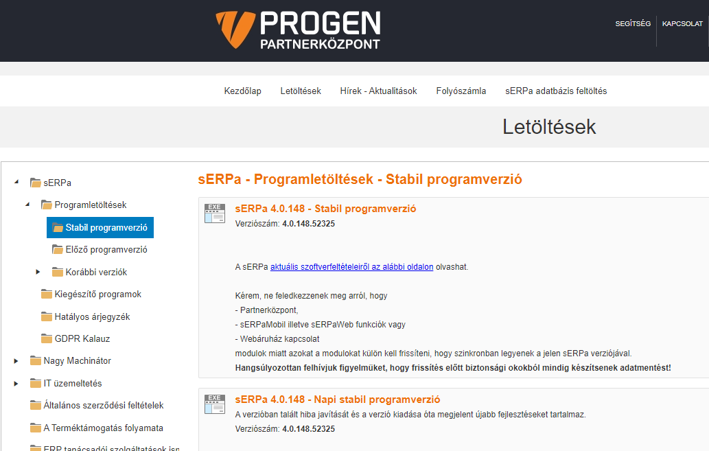 A Telepítőkészlet Stabil, Előző és Korábbi verziói - megfelelő jogosultság esetén - letölthetők a Partnerközpontunkból:
