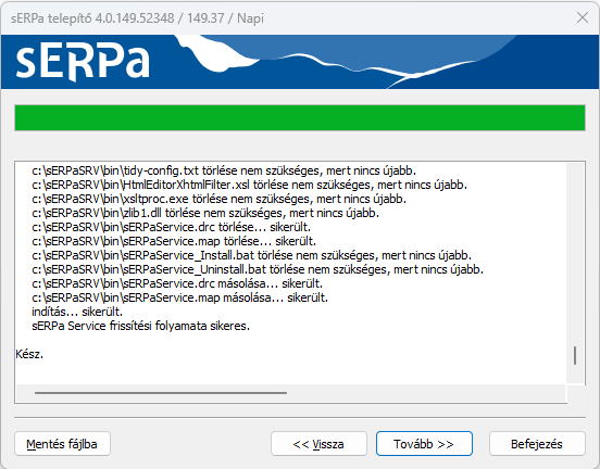 A sERPa felületéről is visszanézhető a log, a Frissítés napló funkcióban.