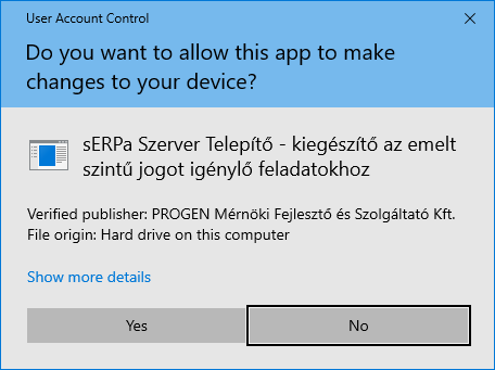 Az install.exe-t nem kötelező rendszergazda jogosultságágú felhasználóval, illetve "Futtatás rendszergazdaként..." módon indítani, de ha a telepítés során szüksége van rendszergazdai szintre, akkor a Telepítőkészletben lévő segédprogramot (Install_Eleated.exe) elindítva rendszergazdai szintet, illetve felhasználót kér.