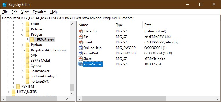 Telepítővel telepített sERPa esetén : HKEY_LOCAL_MACHINE\SOFTWARE\WOW6432Node\ProgEn\sERPaServer