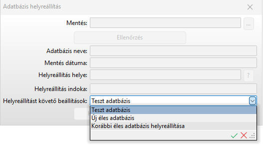 Funkció elérése menüszerkesztéskor: Rendszerfunkciók / Adatbázis karbantartás / Adatbázis helyreállítás