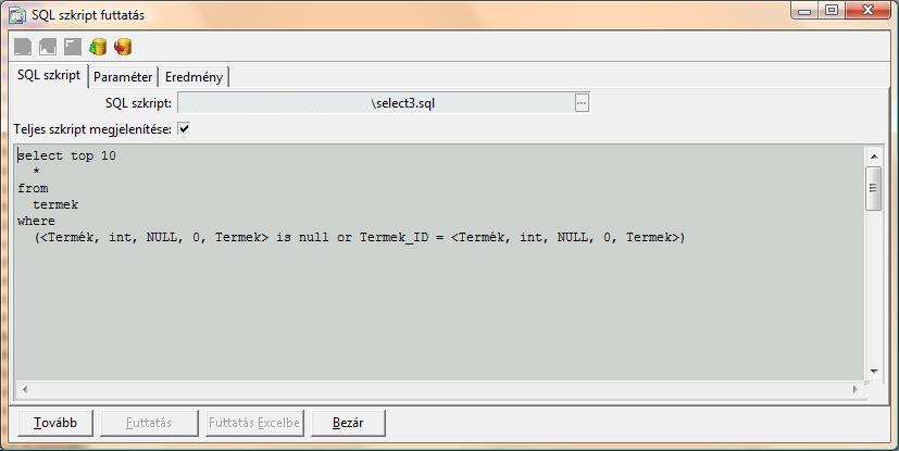 Használhatunk makrókat (bemenő adatokat adhatunk meg az eredmény előtt), amely a Paraméter fülön a felhasználó adhat meg, mint egy sERPa lista esetén.