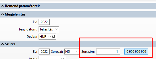 A bizonylataink sorszáma jellemzően a Sorszám (nagy) típus, Integer, '.10' maszkkal. Az eredményhalmaz bemenő paramétereknél ez így jelenik meg: